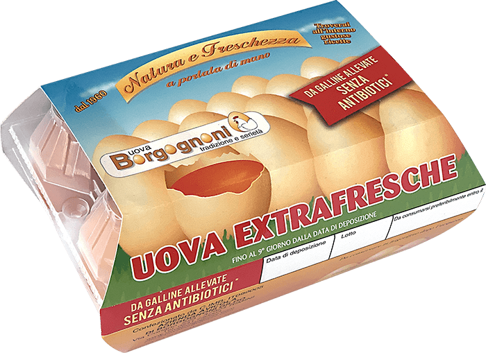Uova Borgognoni da più di 60 anni è sinonimo di genuinità. Uova freschissime, certificate, da allevamento a terra;
